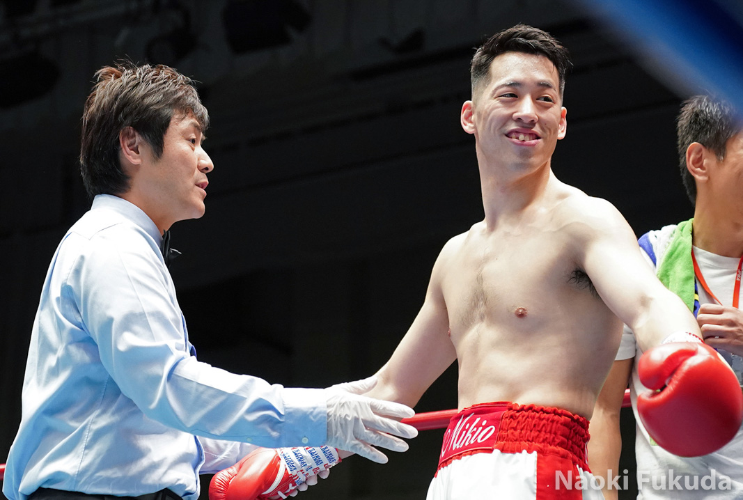 酒井 幹生(角海老宝石)VS 友松 藍(ワタナベ)Photo by 福田直樹