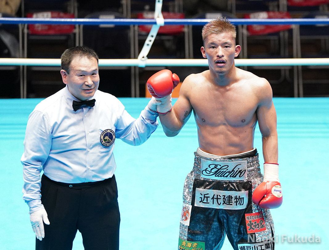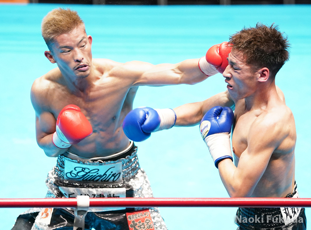 粕谷 雄一郎(角海老宝石)VS内藤 未来(E&Jカシアス) Photo by 福田直樹