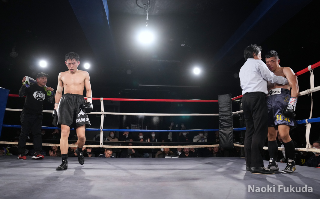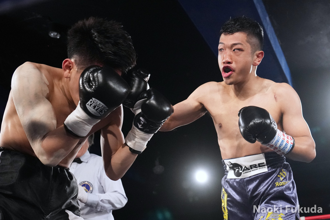 アズマー田中(FLARE山上)VS鳥井 士恩(角海老宝石) Photo by 福田直樹